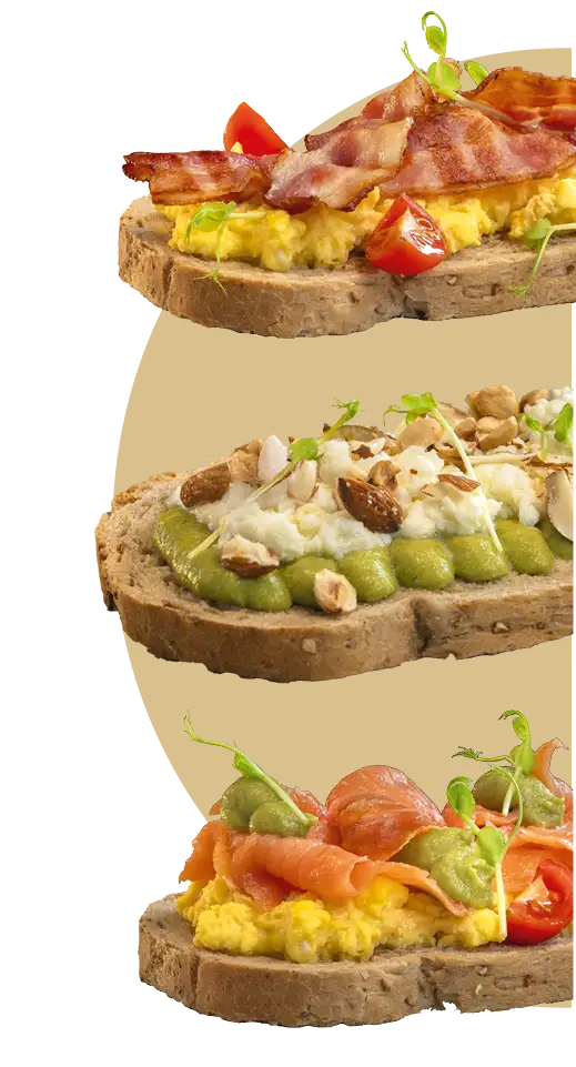 Whole wheat homemade bread, scrambled egg whites, avocado cream, dried fruits