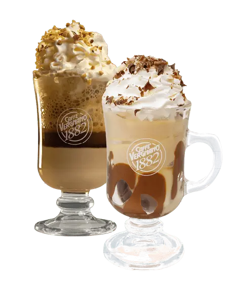 Caramel, espresso 1882, milk, ice, whipped cream, hazelnut crumble
