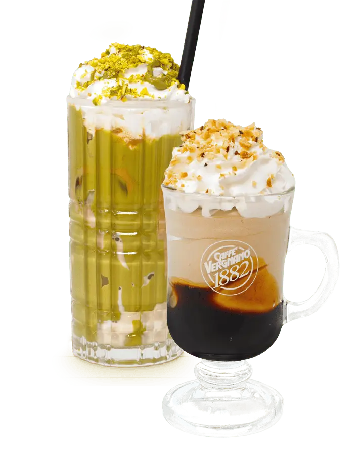 Espresso 1882, amaretto Disaronno, whipped cream, pistachio crumble